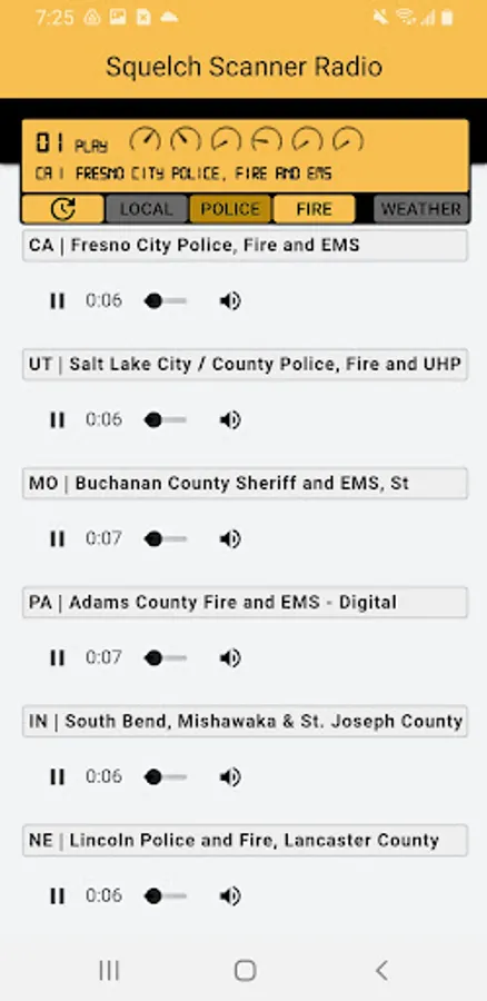 Listen to the top 6 public safety streams simultaneously like a REAL scanner radio! Ranked by current listener count, this app will keep you on top of the current incidents and hotbeds of public safety chatter.