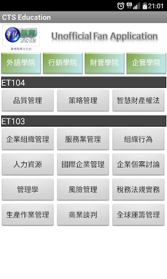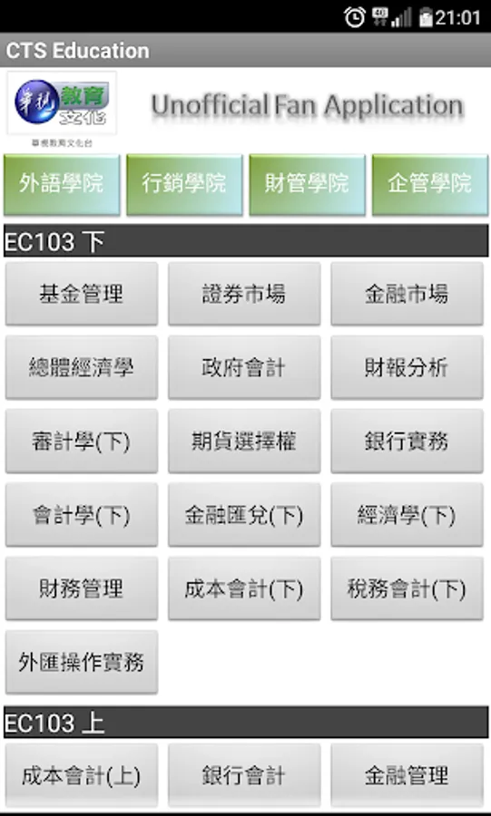 - 財管學院 (基金管理、期貨選擇權、外匯操作實務、證券經營實務...)