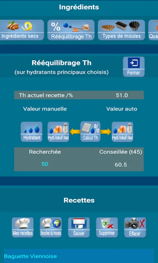 It is also possible to enter a recovered recipe ... to calculate it according to a total weight or weight of flour.