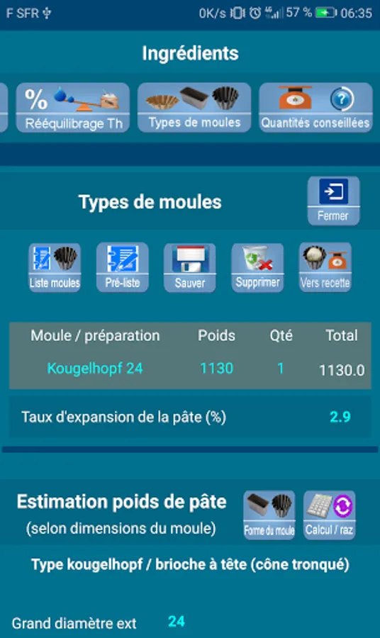 3 / Required quantities: allows you to calculate the quantity of dough needed for your recipe ... according to the type of mold used if used or not.