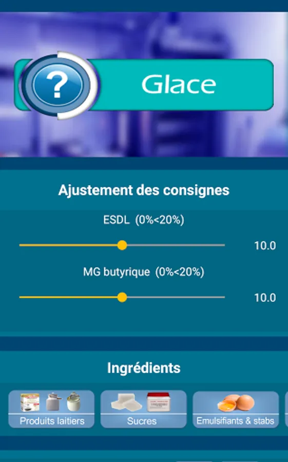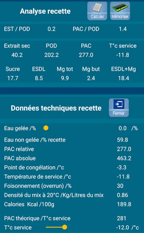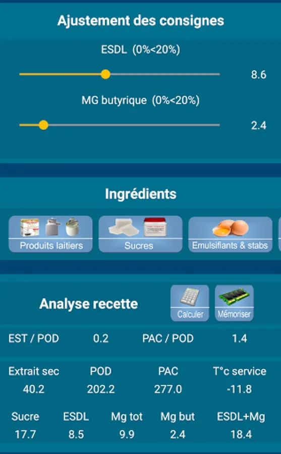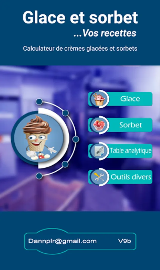 This android application dedicated to the balancing of ice cream recipes, sorbets and their variants, has 4 parts: