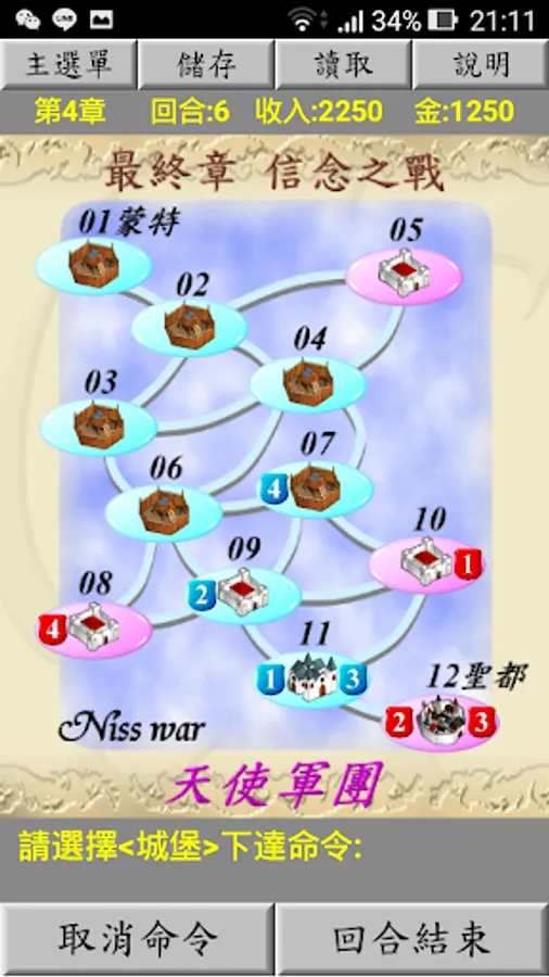 There are 4 levels in this game, and you will get an evaluation after passing each level. The less rounds you use, the more castles you occupy, the higher the evaluation.