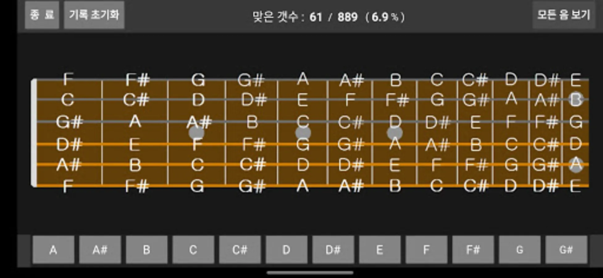 At this time, you can memorize the guitar fingerboard by guessing which of the 12 notes shown below.