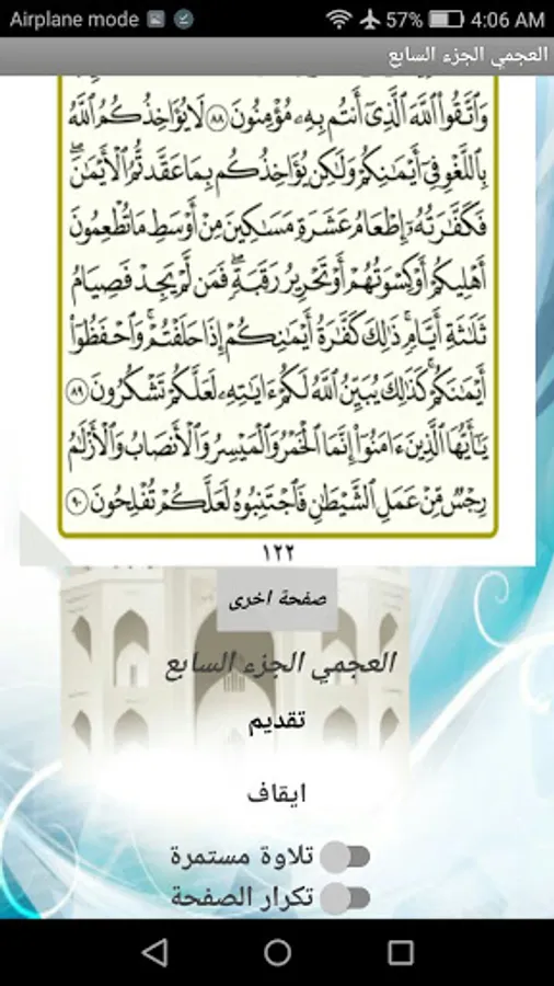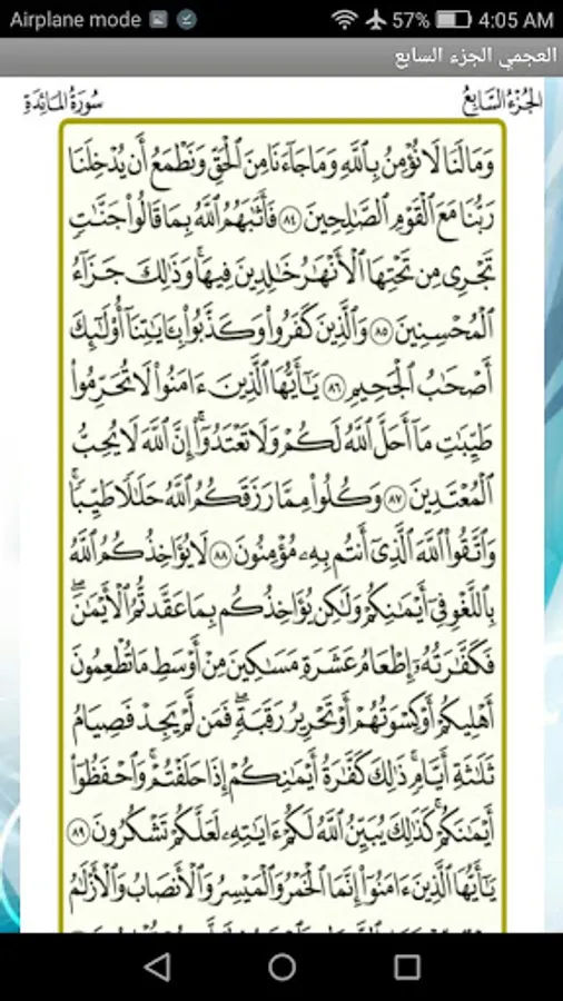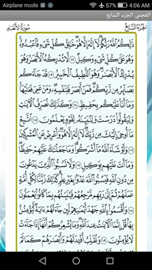 An application that helps memorize the seventh part of the Holy Quran recitation of Sheikh Ahmed Al-Ajami The application is characterized by controlling the repetition of the page or repeating the full recitation of the part with the ability to display the pages of the Qur’an with the recitation. It is also possible to stop the recitation at a specific location and then continue reading and hearing in case of desiring that application It does not need internet. Download the application only once. We hope you enjoy the application