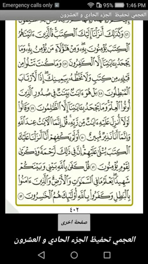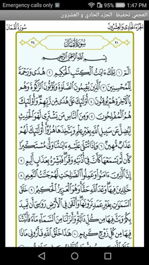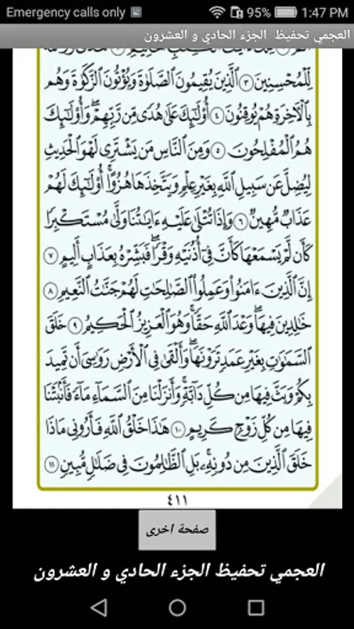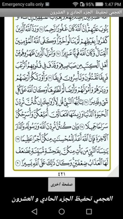 An application that helps in memorizing the twenty-first part of the Holy Qur’an through the audio repetition of the pages of the part in the voice of Sheikh Ahmed bin Ali al-Ajmi, may God make it in the balance of his good deeds and our good deeds, and we ask you to pray