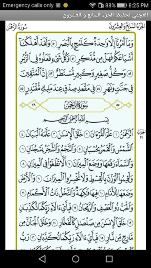 An application that helps memorize the twenty-seventh part of the Holy Qur’an through audio repetition of the pages of the part in the voice of Sheikh Ahmed bin Ali al-Ajami, may God make it in the balance of his good deeds and our good deeds, and we ask you to pray