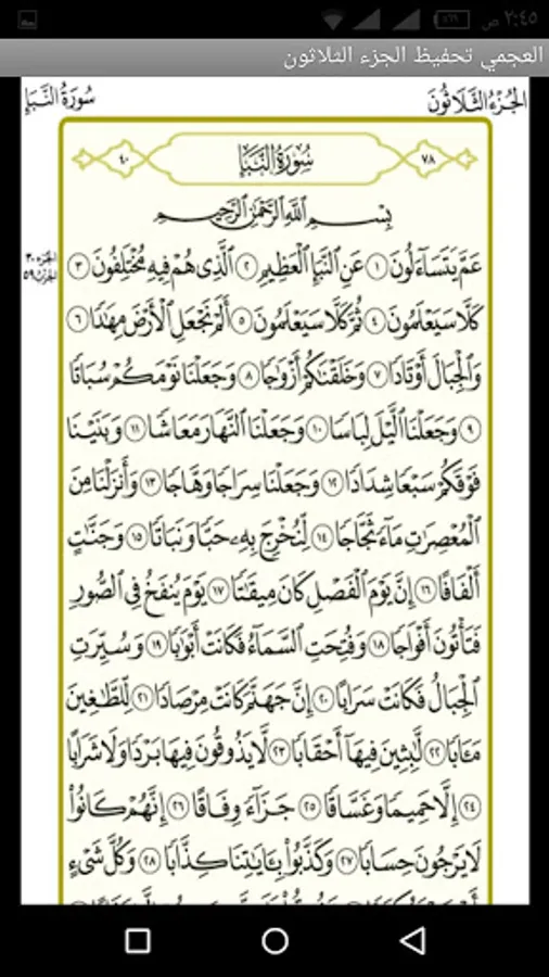An application to memorize the thirtieth part (Juz Amma) of the Holy Qur’an by repeating my hearing the pages of the thirty part in the voice of Sheikh Ahmed bin Ali al-Ajami, may God make it in the balance of his good deeds and our good deeds, and we ask you to pray