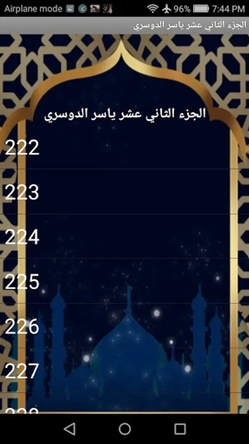 An application that helps to memorize the twelfth part of the Holy Qur’an recitation of Sheikh Yasser Al-Dosari. The application is characterized by controlling the repetition of the page or repeating the full recitation of the part with the ability to display the pages of the Qur’an with the recitation. Recitation can also be stopped at a specific location and then continue reading and hearing if desired The application does not need internet. Download the application only once. We wish you to enjoy the application and enjoy the Sheikh’s recitation