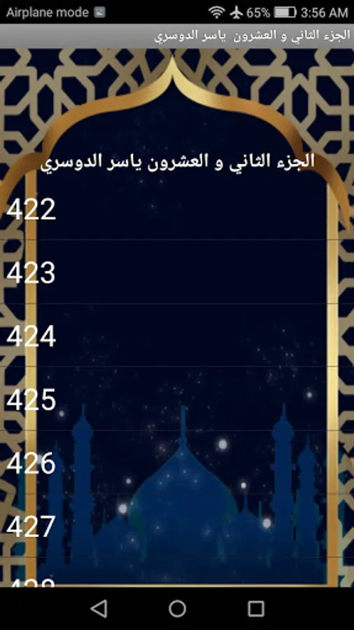 An application that helps to memorize the twenty-second part of the Holy Qur’an recitation of Sheikh Yasser Al-Dosari The application is characterized by controlling the repetition of the page or the repetition of the full recitation of the part with the ability to display the pages of the Qur’an with the recitation. Recitation can also be stopped at a specific location and then continue reading and hearing if desired in That application does not need internet. Download the application only once. We wish you to enjoy the application and enjoy the Sheikh’s recitation