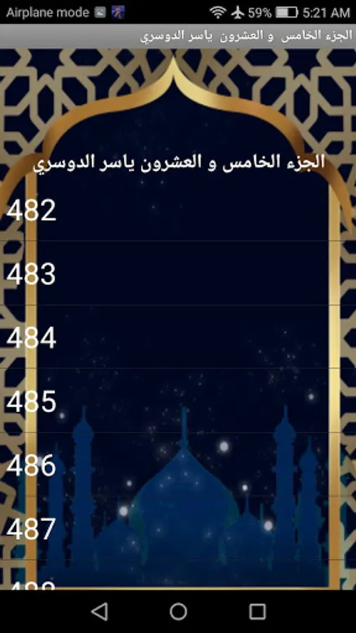 An application that helps to memorize the twenty-fifth part of the Holy Qur’an recitation of Sheikh Yasser Al-Dosari. The application is characterized by controlling the repetition of the page or repeating the full recitation of the part with the ability to display the pages of the Qur’an with the recitation. Recitation can also be stopped at a specific location and then continue reading and hearing in case of desire to That application does not need internet. Download the application only once. We wish you to enjoy the application and enjoy the Sheikh’s recitation