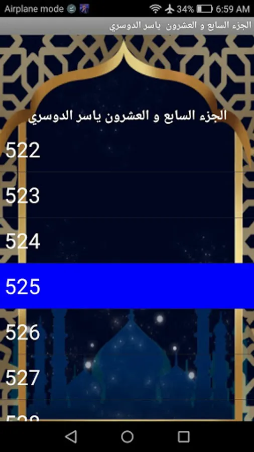 An application that helps to memorize the twenty-seventh part of the Holy Qur’an recitation of Sheikh Yasser Al-Dosari The application is characterized by controlling the repetition of the page or the repetition of the full recitation of the part with the ability to display the pages of the Qur’an with the recitation. Recitation can also be stopped at a specific location and then continue reading and hearing if desired That application does not need internet. Download the application only once. We wish you to enjoy the application and enjoy the Sheikh’s recitation