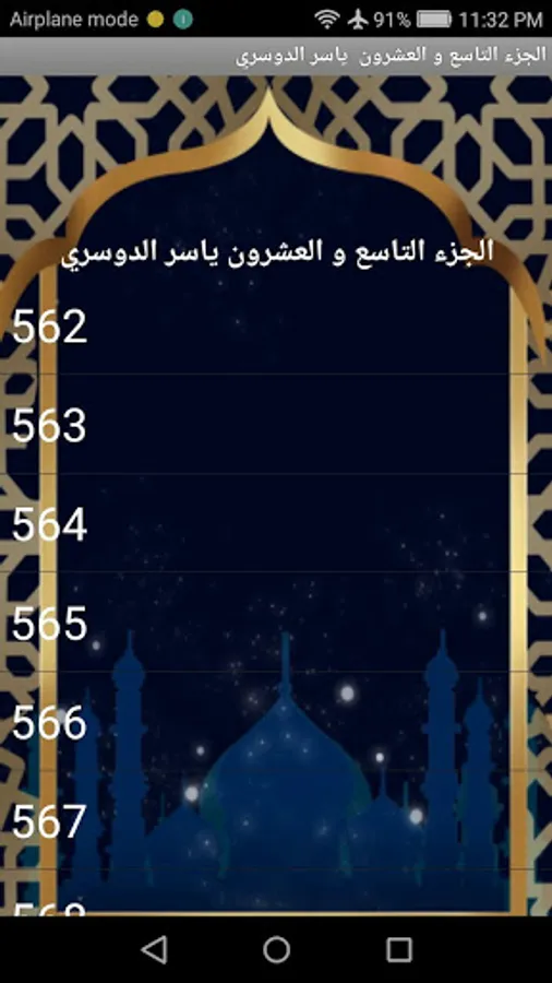 An application that helps memorize the twenty-ninth part of the Holy Qur’an recitation of Sheikh Yasser Al-Dosari. The application is characterized by controlling the repetition of the page or repeating the full recitation of the part with the ability to display the pages of the Qur’an with the recitation. Recitation can also be stopped at a specific location and then continue reading and hearing in the event of desire to That application does not need internet. Download the application only once. We wish you to enjoy the application and enjoy the Sheikh’s recitation