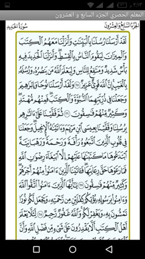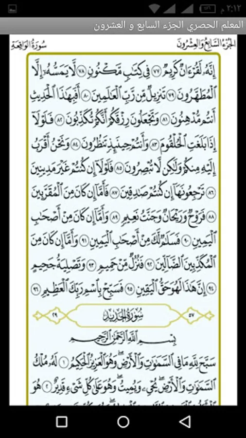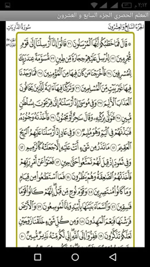 This application helps in memorizing the twenty-seventh part of the Holy Qur’an by repeating my hearing the pages of the part with the voice of Sheikh Mahmoud Khalil Al-Hosari, may God have mercy on him, with his voice in the teacher's Qur’an. Many Muslims and we ask you to pray