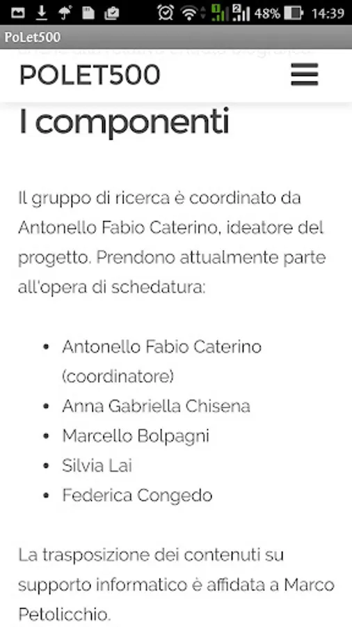 Each card includes the following items: Chronology, Topics, Protagonists, Other characters involved, Synopsis of the story, Historical sources, Letters, Literary sources, Bibliography and Author of the voice. The reference to the texts in their entirety will take place - when possible - by connecting to an external url; otherwise a transcription of service will be provided. Always if possible, any reference to an author will also refer to the relative biographical entry.