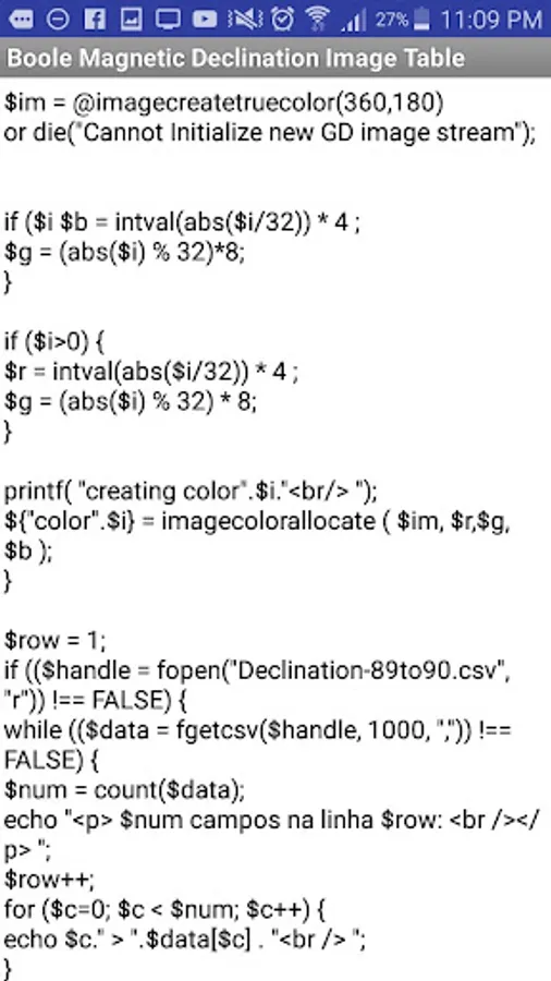 if (($handle = fopen("Declination-89to90.csv", "r")) !== FALSE) {