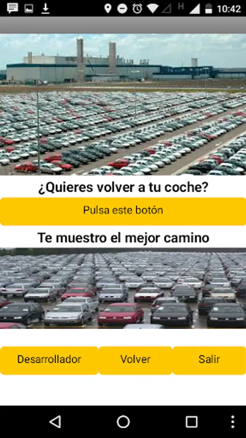 Our app by pressing two buttons, using the resources of Google Maps, we trace the best route to get back to where we parked our car.