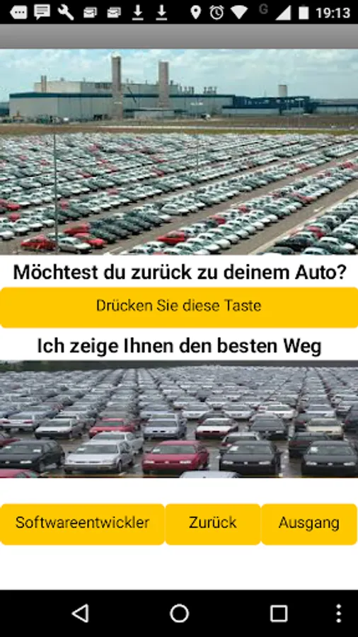 The first button "Say it by pressing the button" we position the parked vehicle and store this information in a database of the mobile phone.