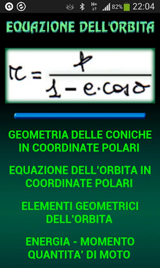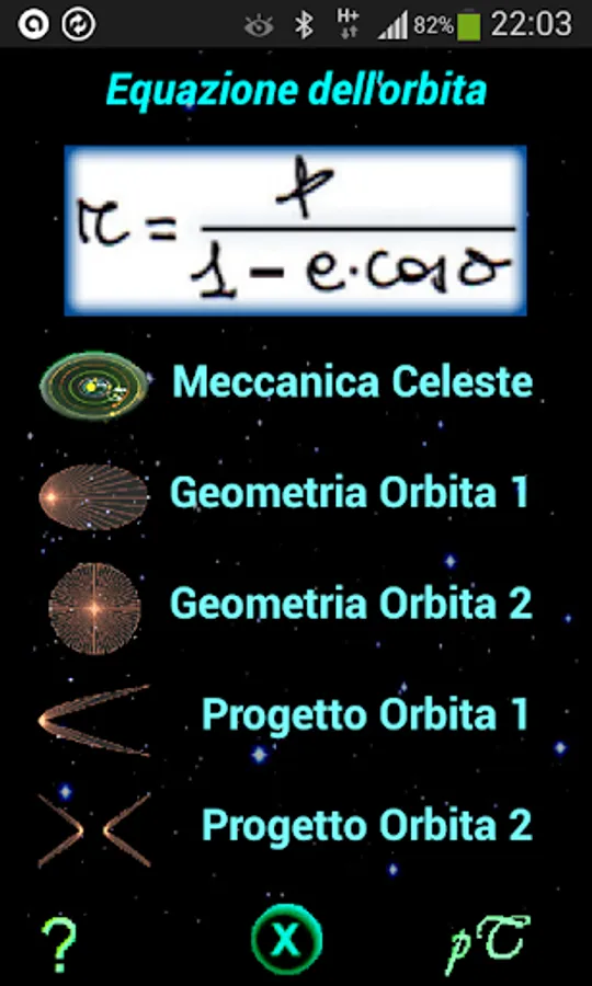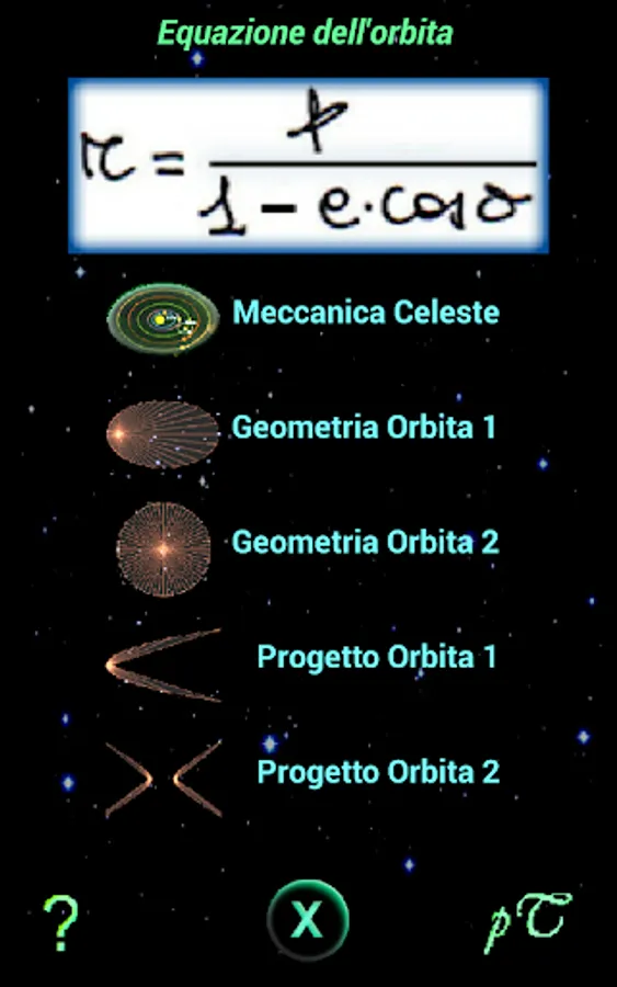 The top button, where you played the orbit equation, it accesses to the theory of the fundamental elements of conic (ellipse, parabola, hyperbola).