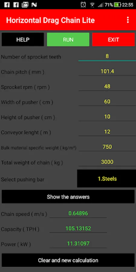 When finished input progress user can push ( click, tab ) "RUN" button for the calculation process.