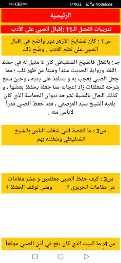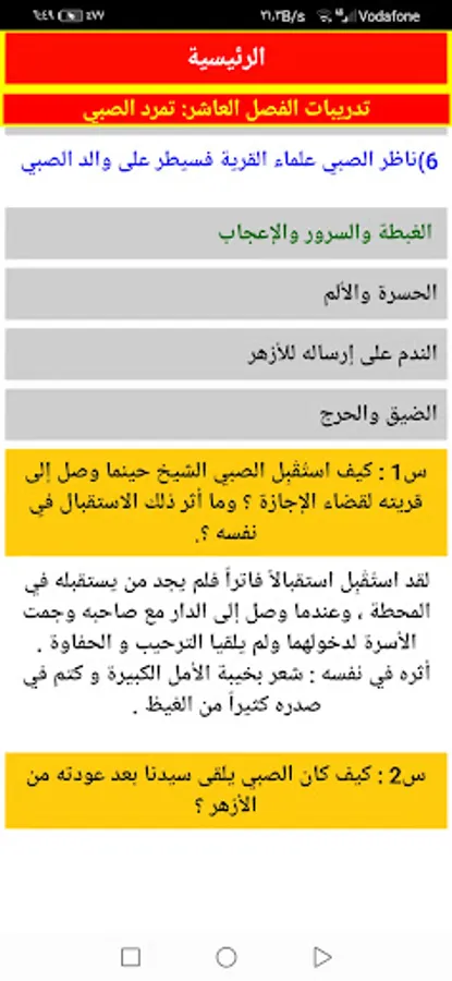 In this application, a presentation of the text of the story with pictures illustrated events in an attractive manner, and with each chapter a variety of questions according to the latest ministerial amendments (multiple choice questions) and the student must test himself by answering the questions by pressing the correct answer with tests for direct questions whose answers appear by simply pressing the Question text