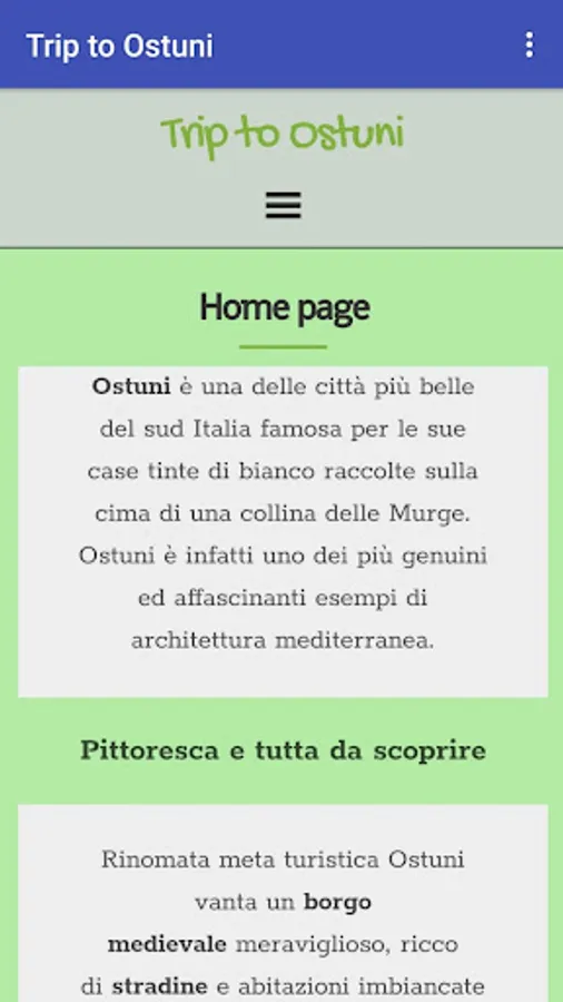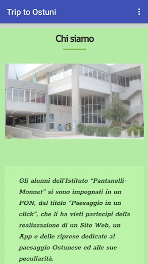 "Trip to Ostuni" was realized in the a. 2018 -2019 by the students Urso Chiara and Zaccaria Stefano.