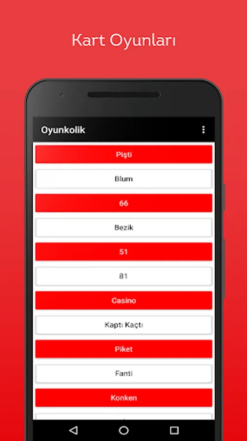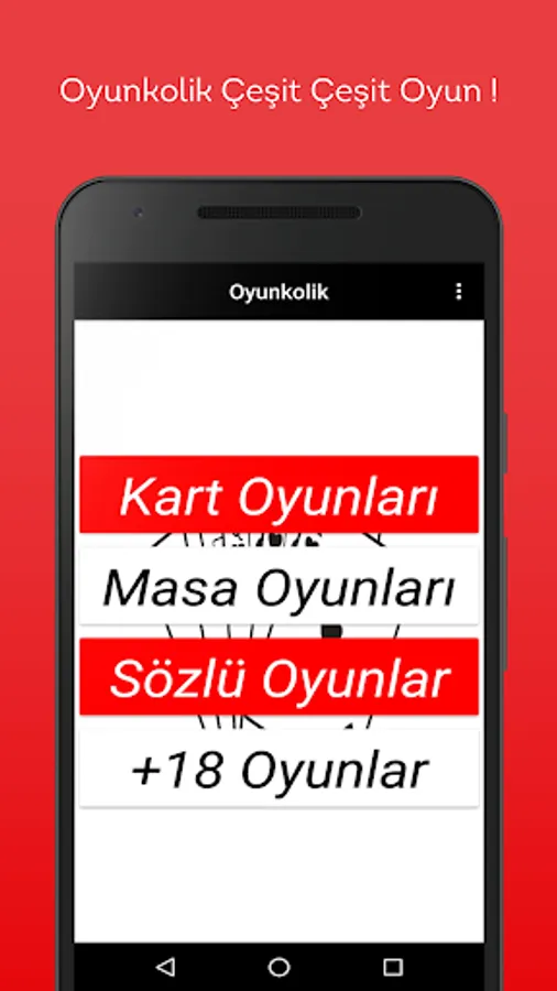 Possibility to play close to 100 games with Oyunkolik. playing games, board games, oral games, +18 games. Discover your new favorite game and challenge your friends. A chance to find a wide range of card games, board games, oral games, board games in one application and learn how to play them. !
