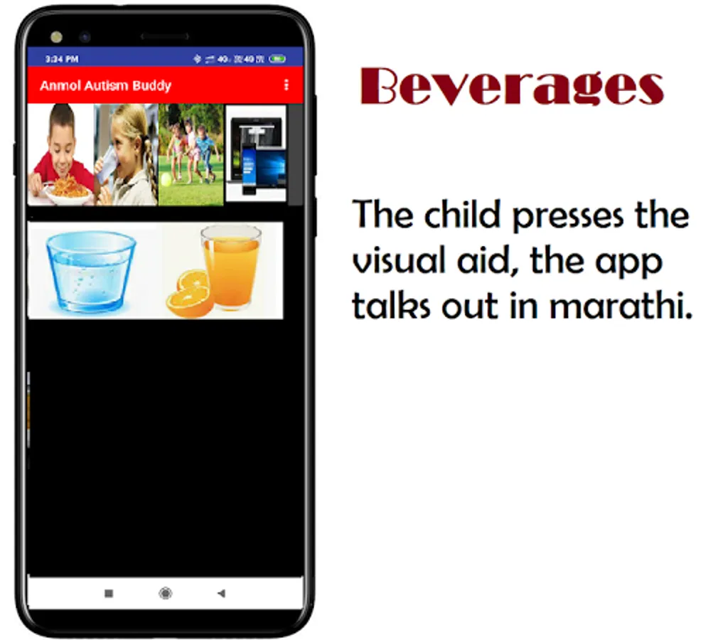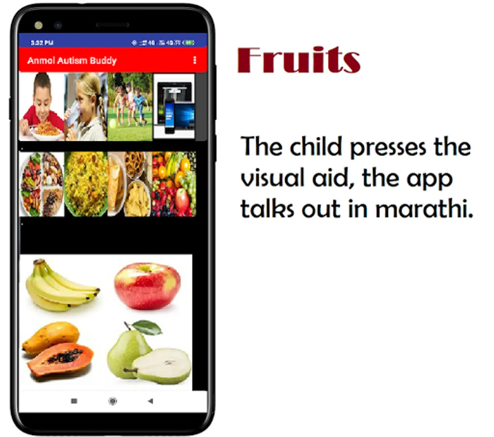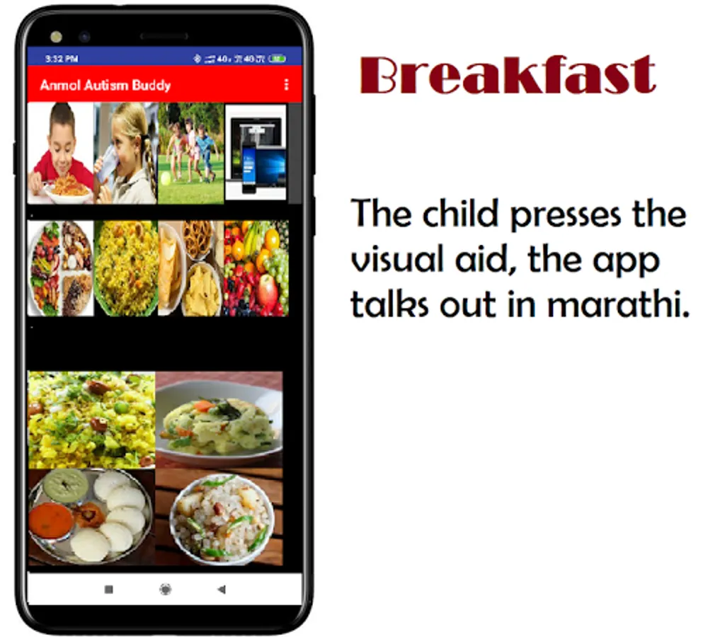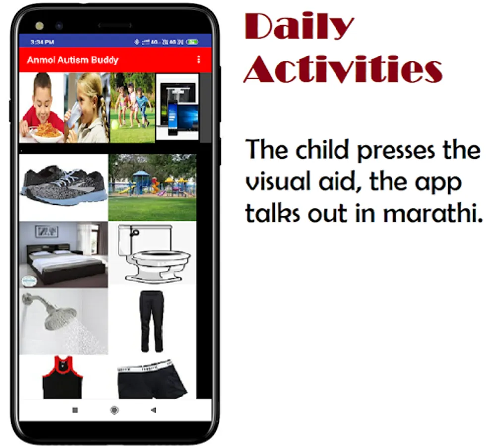 It is a fully-featured speech/communication solution in marathi for people who have difficulty communicating as a result of autism. This is an application for parents whose kids are suffering from Autism. This application enables the parents to help the kid with their day to day needs of doing basic tasks like taking a shower, drinking water & recognizing objects. The application has audio options to help the kids better.