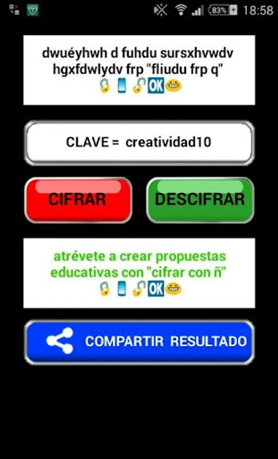 ENCRYPT WITH Ñ lets encode and decode a message and share it with your friends easily.