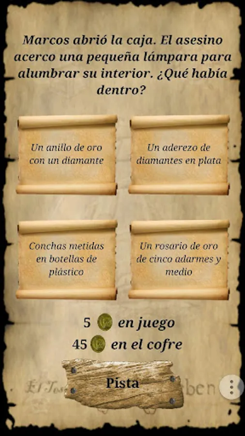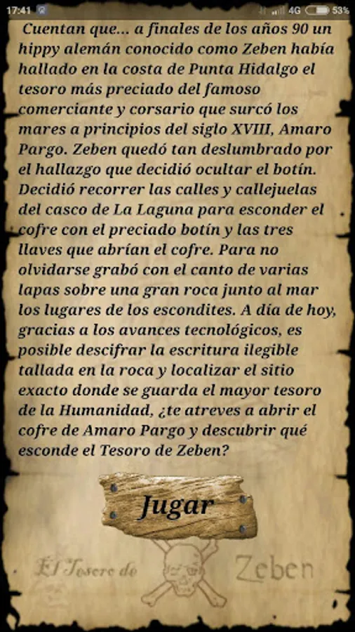 excerpts from the book "The sarcophagus of the three keys" which places in La Laguna are listed whose names have been added are presented in encrypted form; places you have to decrypt and visit guiándote by a map. When in each of the places related questions-challenge reading the book and bring into play the chance to win gold coins to your chest will be activated.