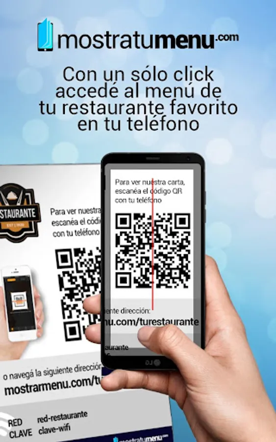 Mostratumenu.com is a menu card design tool for restaurants and bars and Mostratusprecios.com for the development of online price lists. Both generate a unique QR code for each business, which is accessible by cell phones.