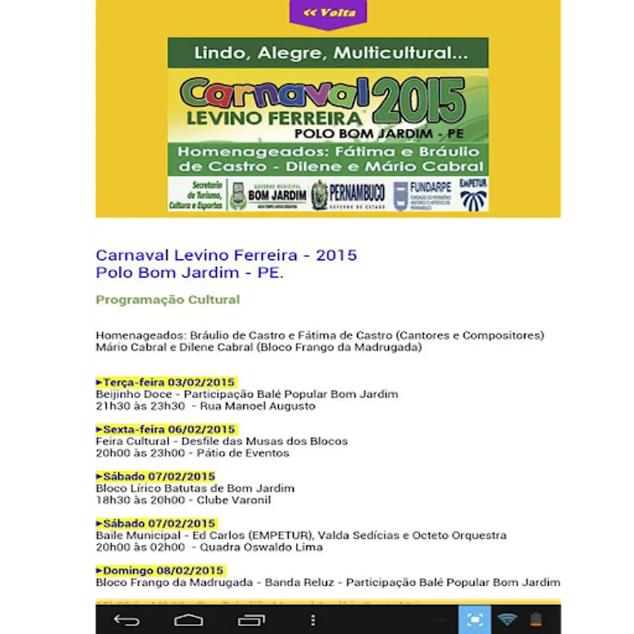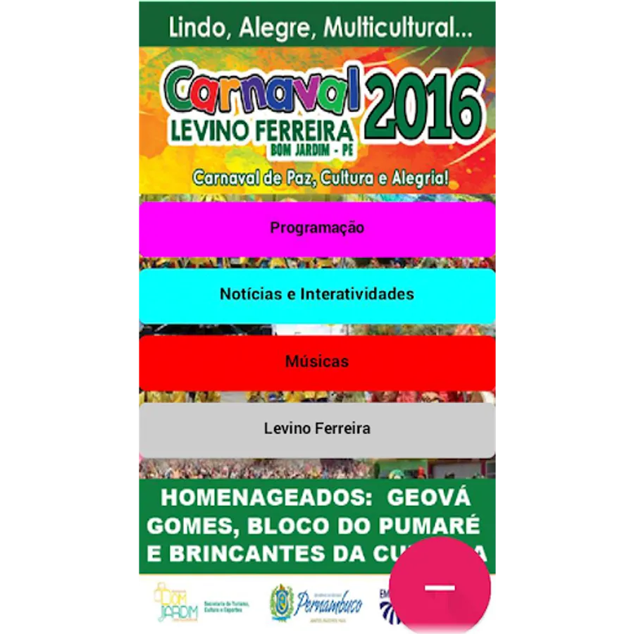 The application has programming Carnival Levin Ferreira - Polo Bom Jardim - PE, with news, interactivity and music. Enjoy increasingly Carnival Levin Ferreira.