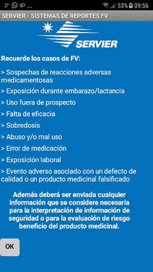 The application of FV Servier Argentina, allows users to remember which is the relevant information (FV) and facilitates the collection of the data required to send it simpler the home team FV Argentina Servier way.