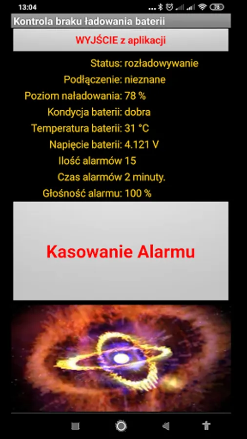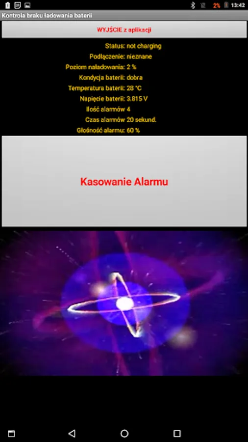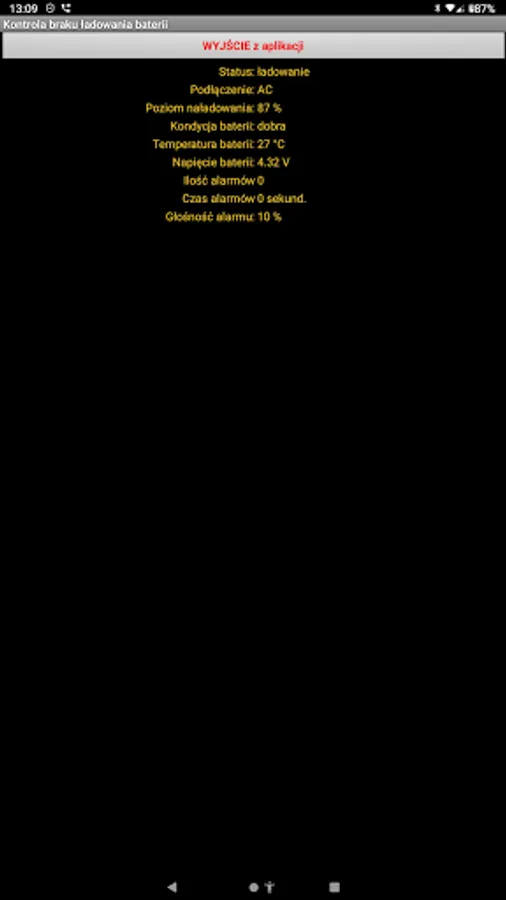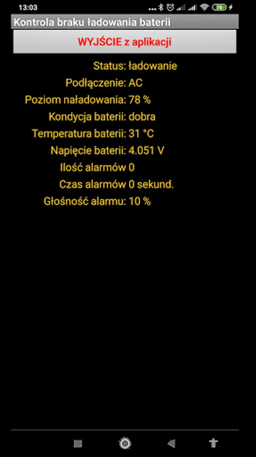 The application triggers an alarm in the event of failure of the phone / tablet battery charging.
