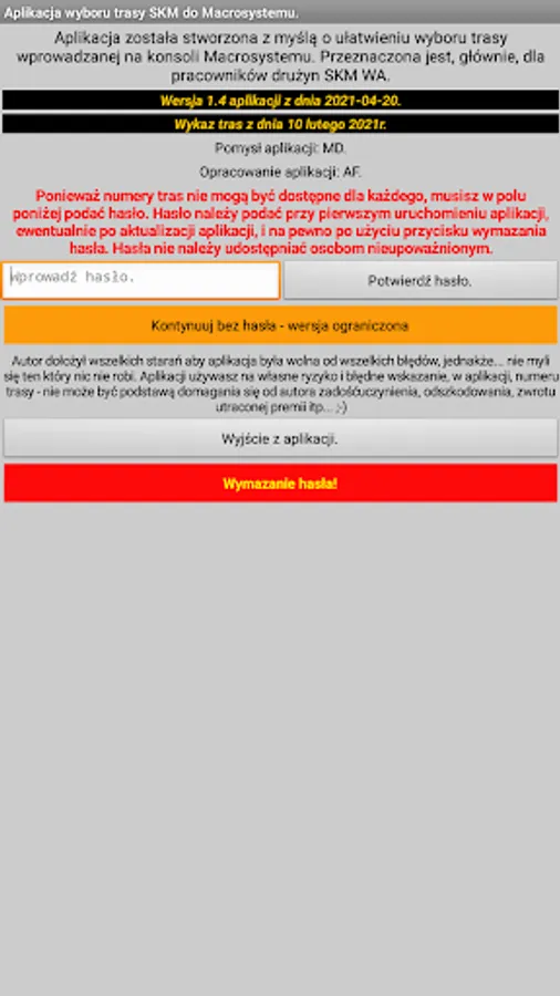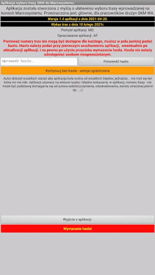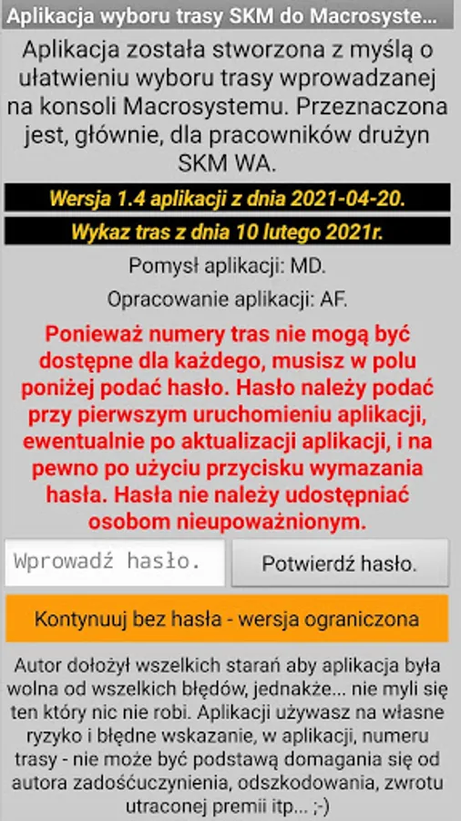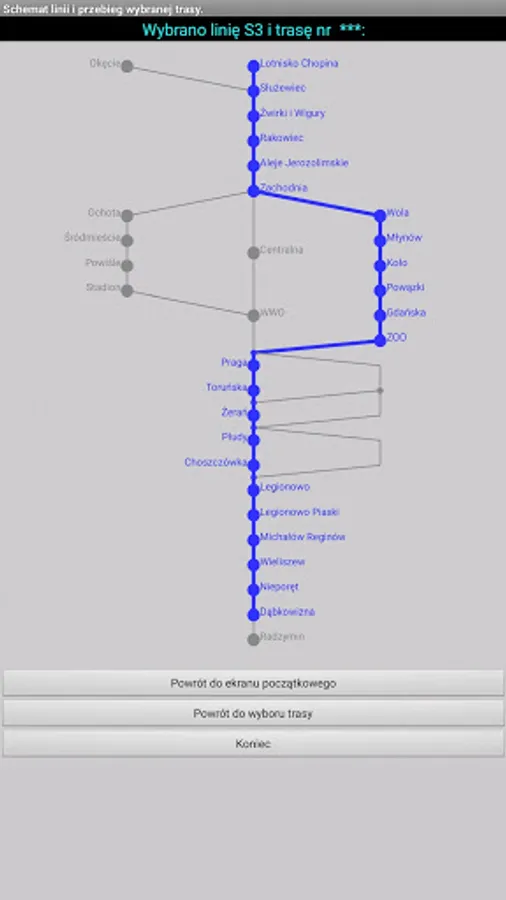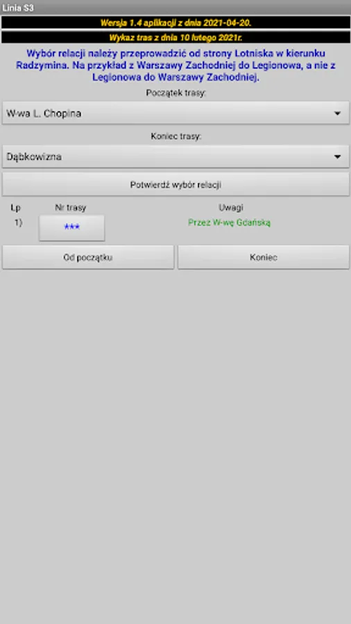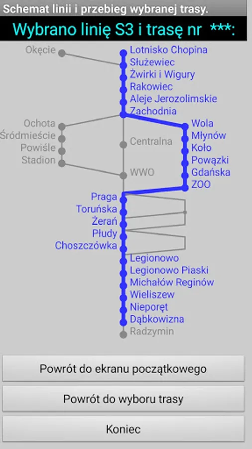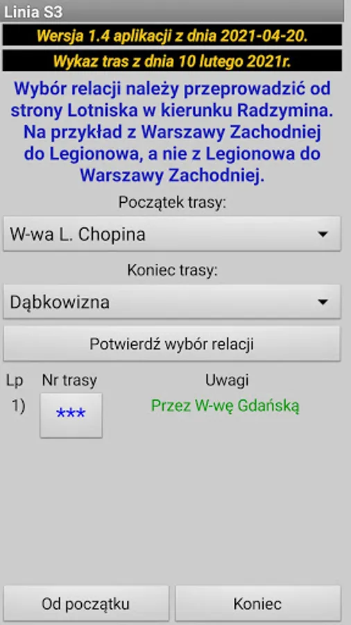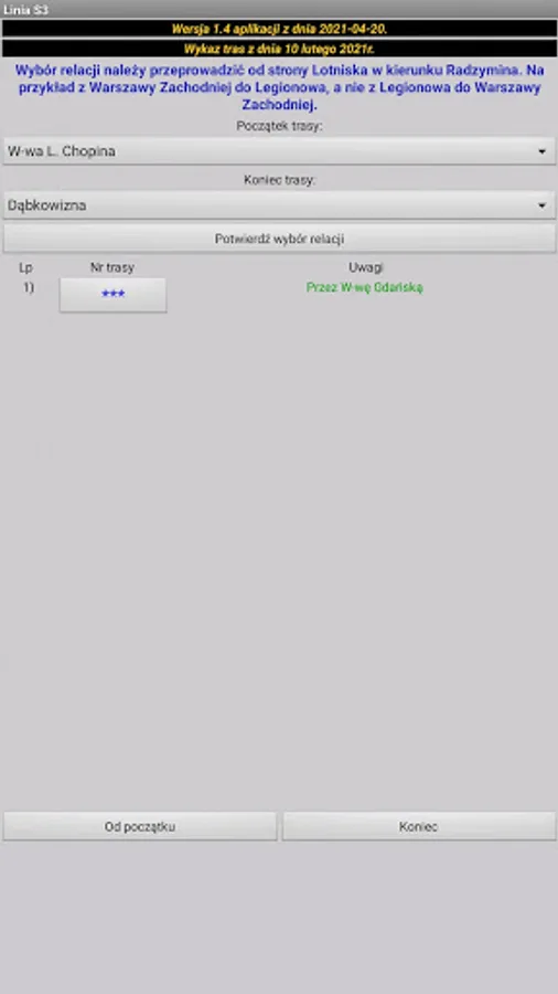 The application allows you to search for the MS route number depending on the given train relation on the selected line.