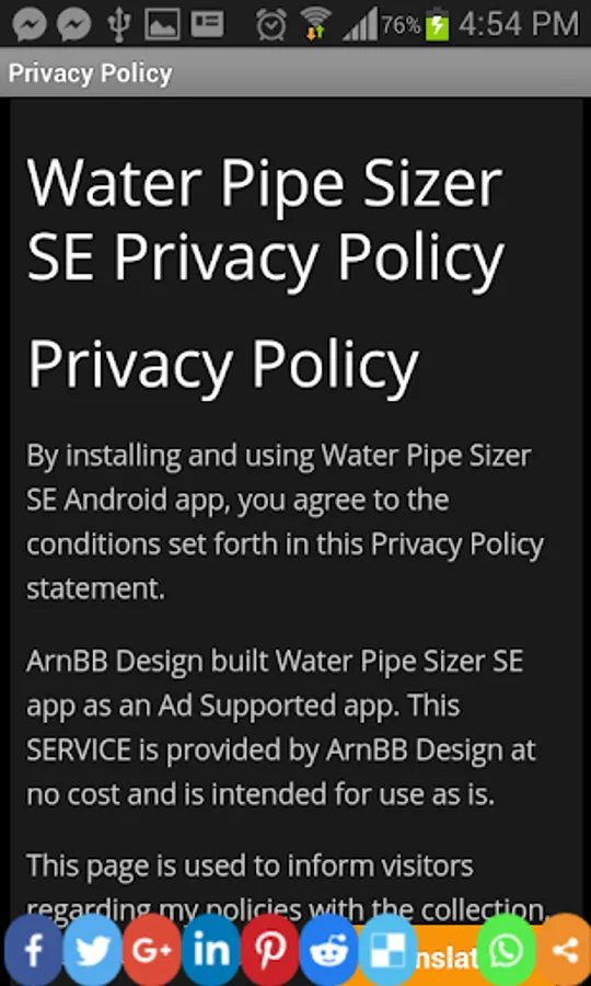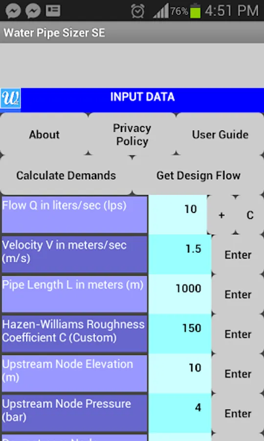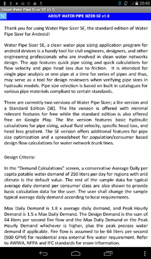 Thank you for using Water Pipe Sizer SE, the standard edition of Water Pipe Sizer for Android!