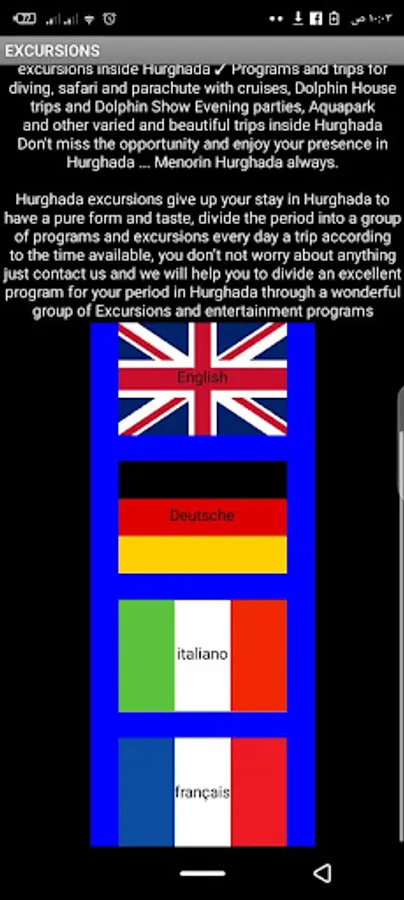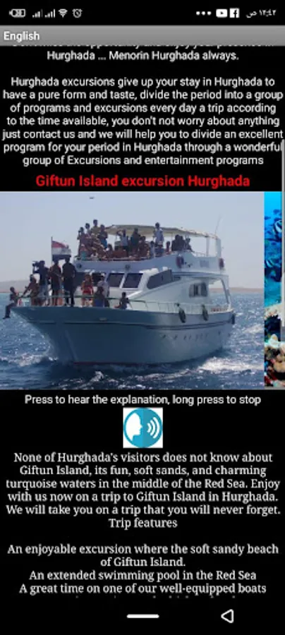 The best set of entertainment programs and excursions inside Hurghada ? Programs, diving trips, safari, parachute, cruises, Dolphin House trips, Dolphin Show Evening parties, Aquapark and other beautiful trips inside Hurghada ? Don't miss the opportunity and enjoy your presence in Hurghada .. Menorin Hurghada always.