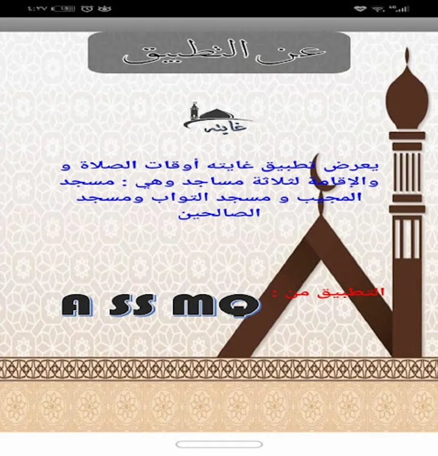 Its purpose is to display the prayer times from the call to prayer and residence for three mosques Al-Mujeeb Mosque Al-Tawab Mosque Al-Saleheen Mosque