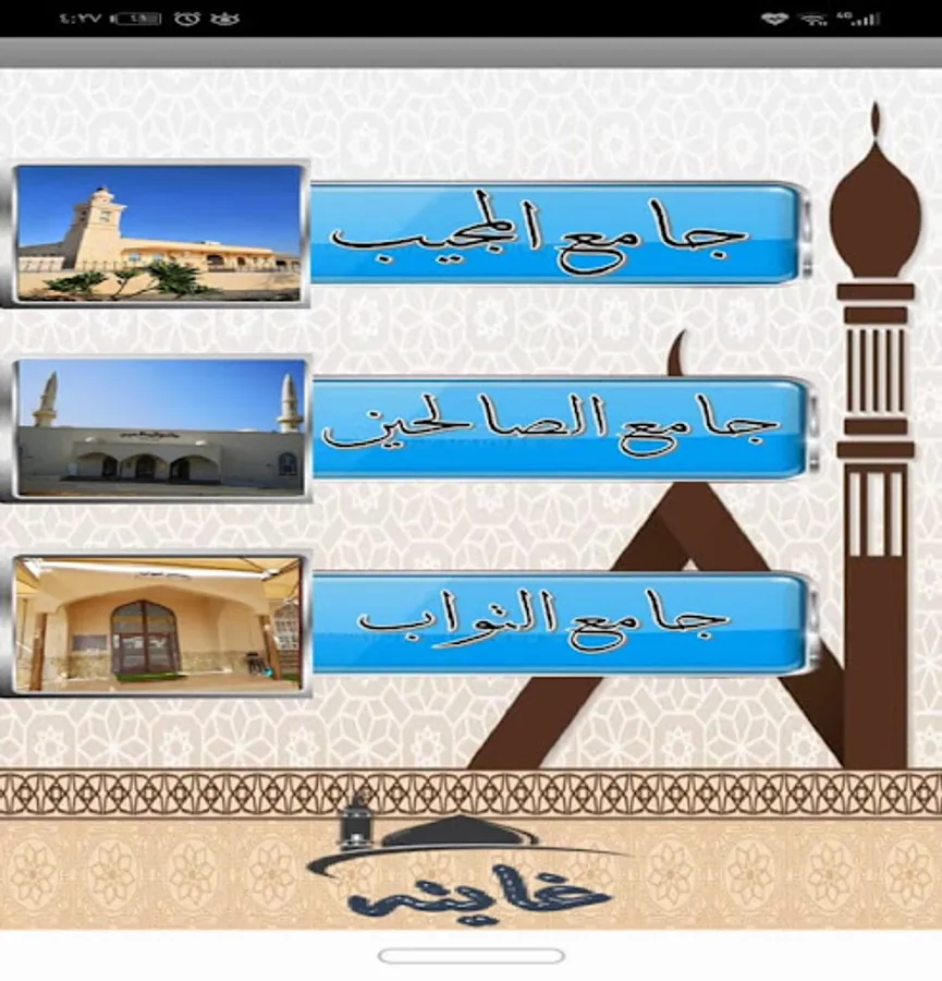 And be in the face of the application three ions or buttons with a picture of each mosque and displays the prayer times for each mosque individually and sin