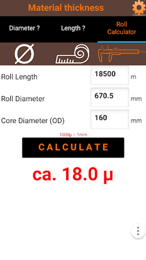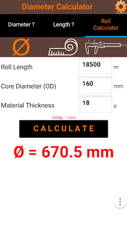 Calculating with roll diameters is a bit tricky. With this app you can calculate beforehand how big the diameter will be. The app has several options.