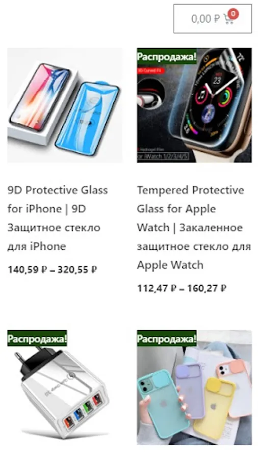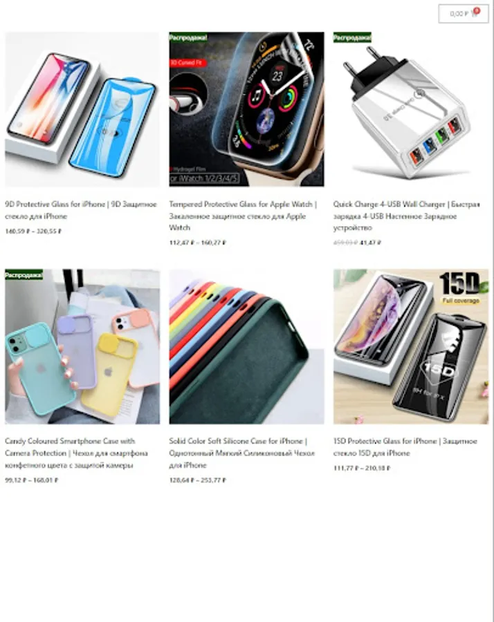 Rosette Site online store app where you can find useful products: 9D Protective Glass for iPhone, Tempered Protective Glass for Apple Watch, Fast Charging 4-USB Wall Charger, Candy Color Smartphone Case with Camera Protection, Solid Color Soft Silicone Case for iPhone, 15D Protective Glass for iPhone.