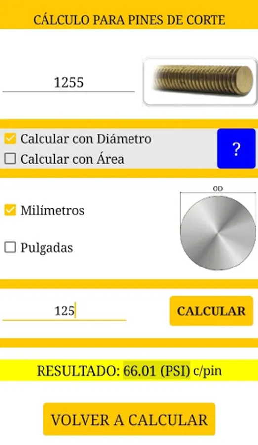 With the test data in pounds of the shear pins and the OD and ID and / or pressure incidence area, the psi value of the shear pins is easily calculated.