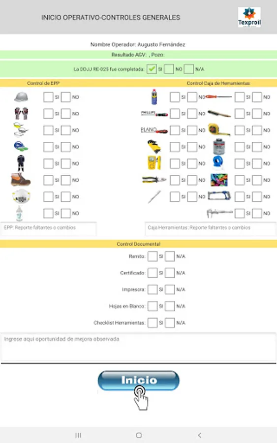 Application created with the specific purpose of complementing the field work of a completion tool operator in the oil industry.