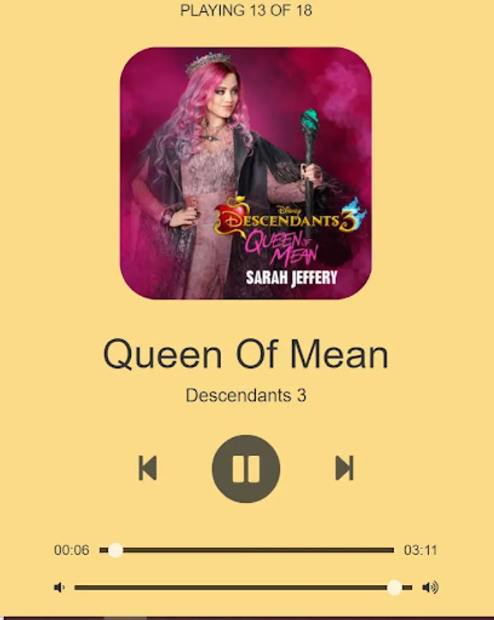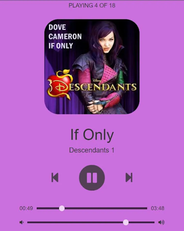 This Is A Music Player For All Songs Of The Descendants Movies. This only contains the main songs from movies and not any songs from comics or other such sources.
