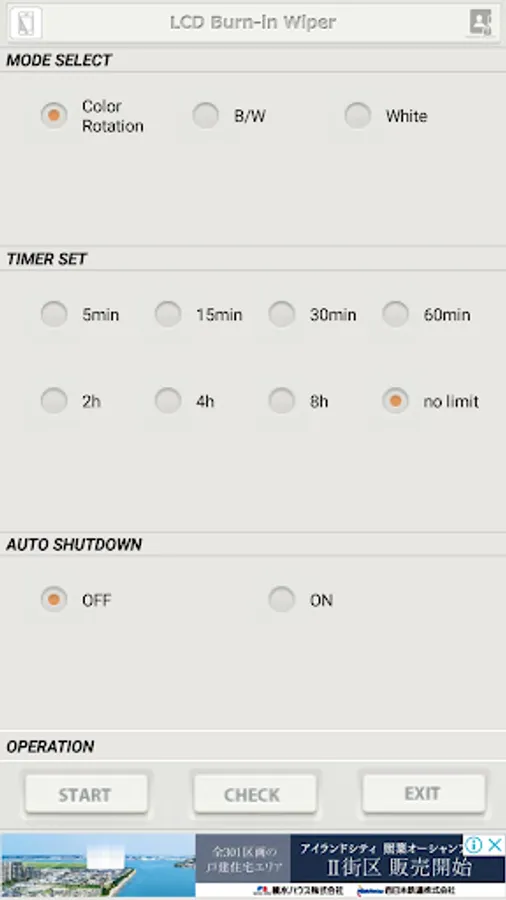 In the "burn-check" screen, to display the screen of various colors and saturation, you can check whether the seizure has occurred.