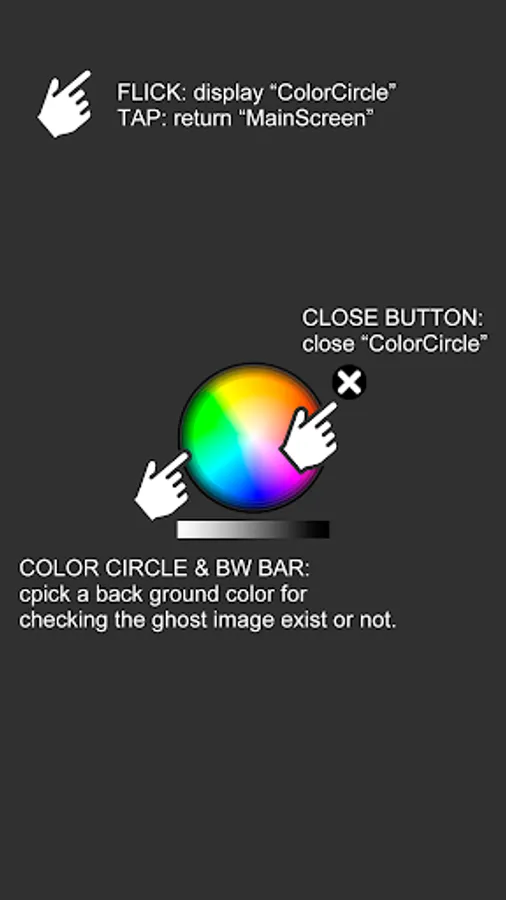 When you swipe the screen, color circle appears, the entire screen can be any color.