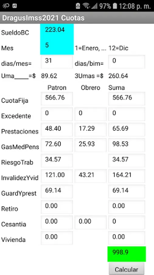 Calculate the monthly and bimonthly monthly and bimonthly workers' employer fees to the IMSS for 2021