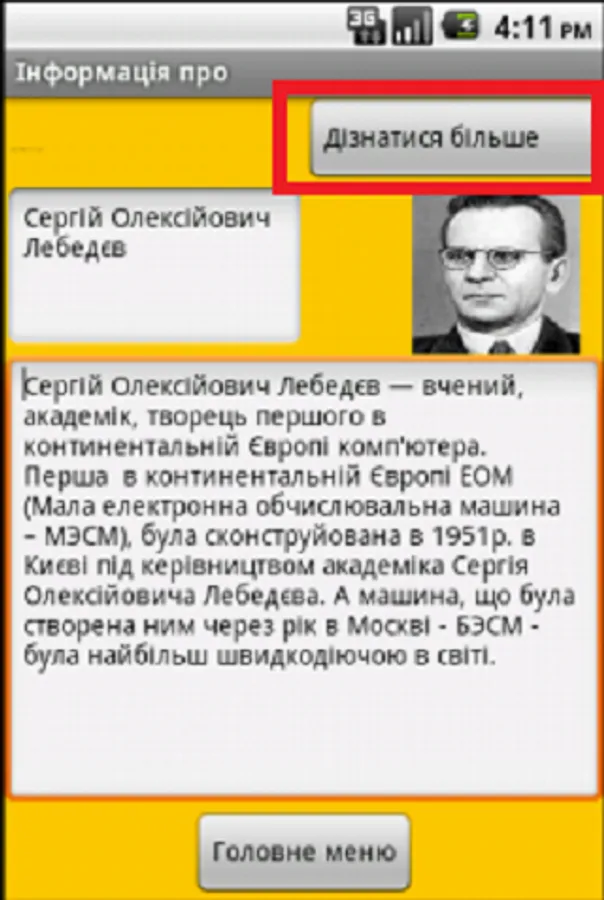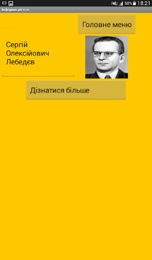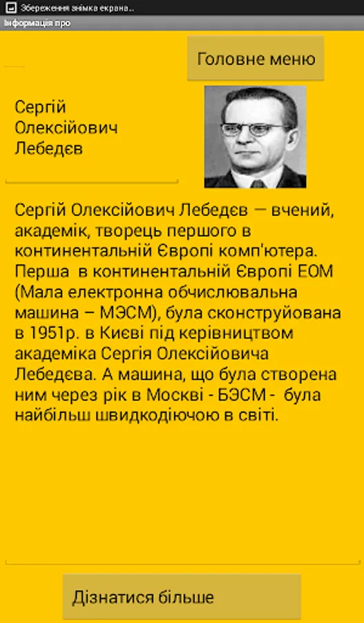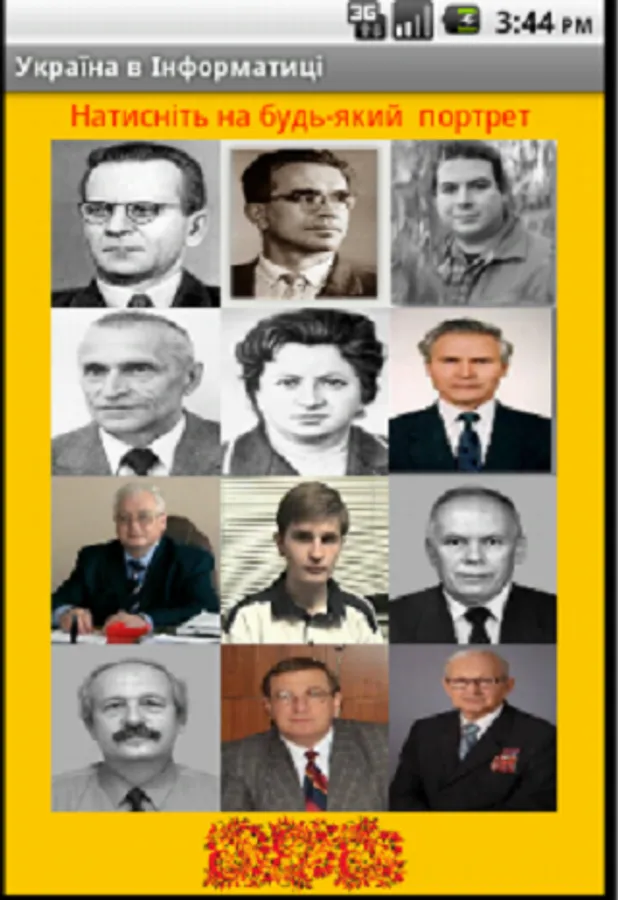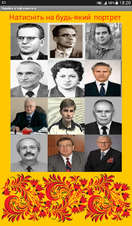 When you start the program the main window appears where you must select a portrait of Ukrainian science.