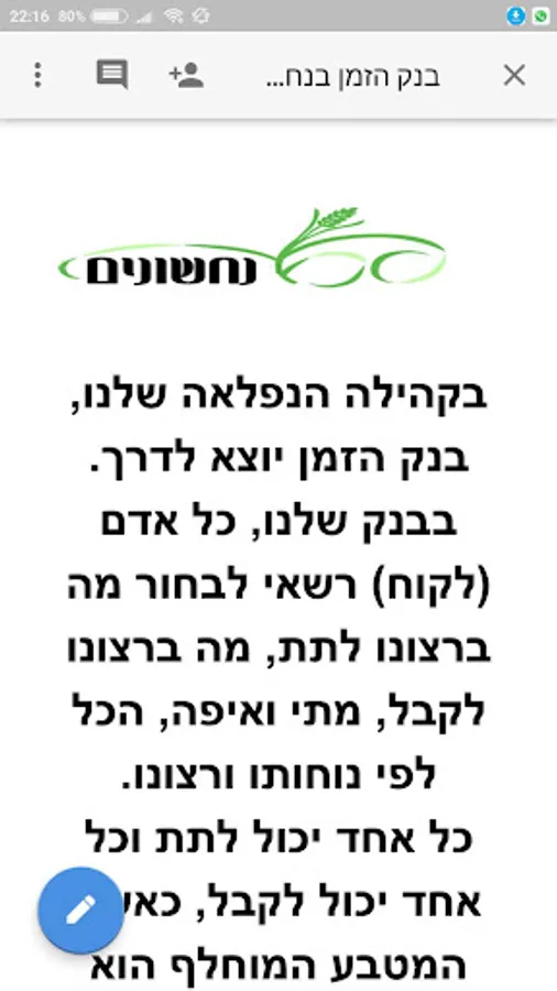 בנק הזמן בנחשונים Screenshots
