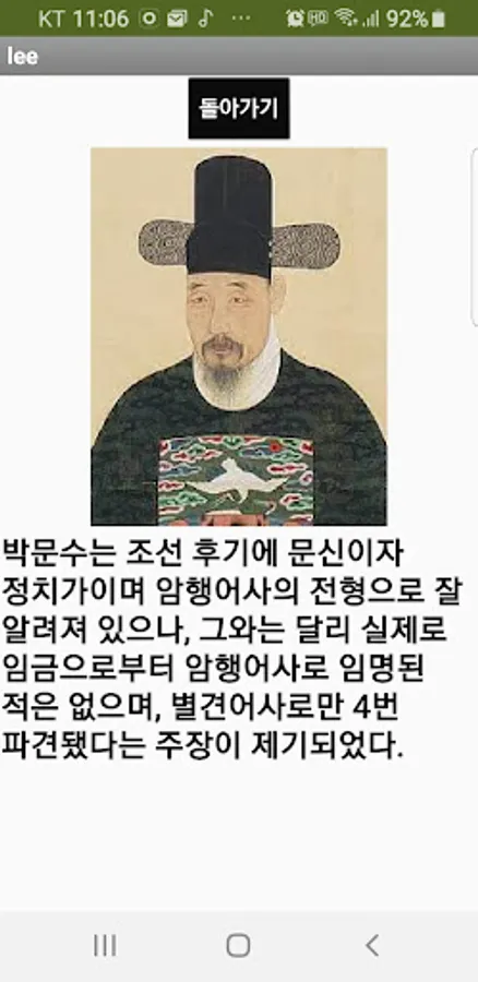 If you click on a person's name, the person's photo and information are displayed, and if you press Return, the screen returns to the first screen.