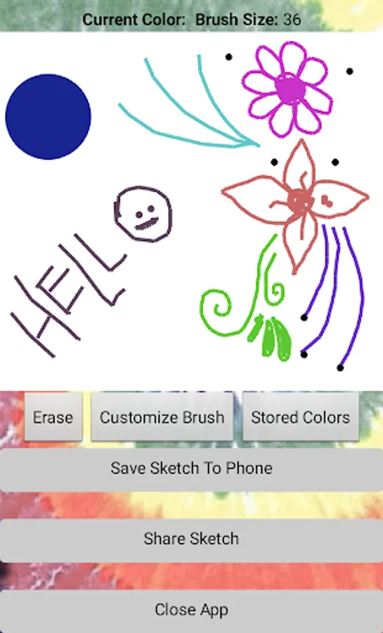 Change color and brush size, save sketches to your phone, and even share images directly from the app! Created by Bryanna Ahlf Fall 2017